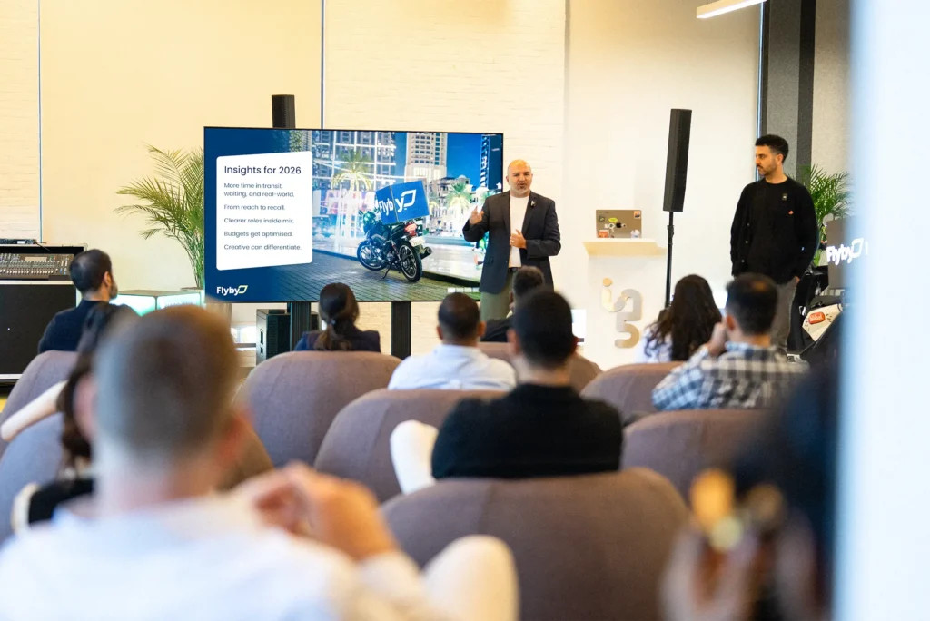 The roadmap shared during the briefing reinforced this direction. Flyby is scaling toward 1,000 boxes in Dubai – a threshold expected to unlock a true planning and data tipping point. At scale, impression data becomes robust enough for serious media planning and third-party validation.